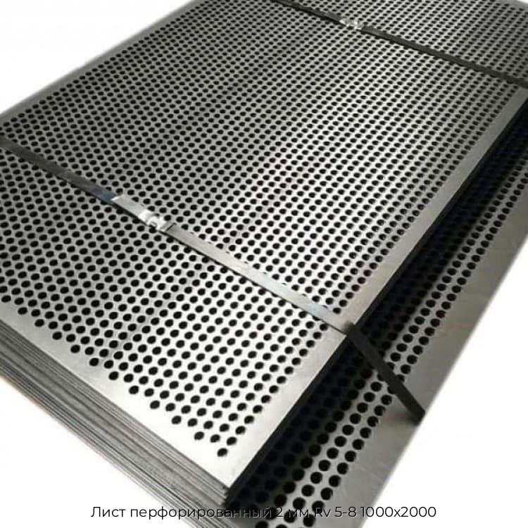 Лист перфорированный стальной 2 Rv 5-8 производится из марки стали 08пс. Металл обладает следующими характеристиками: толщиной от 0,7 до 3 мм и шириной: 1000 – 1250 мм. Стандартная длинна 2-2.5 метра. Тип раскроя проката – 1000 Х 2000 и 1250 Х 2500.