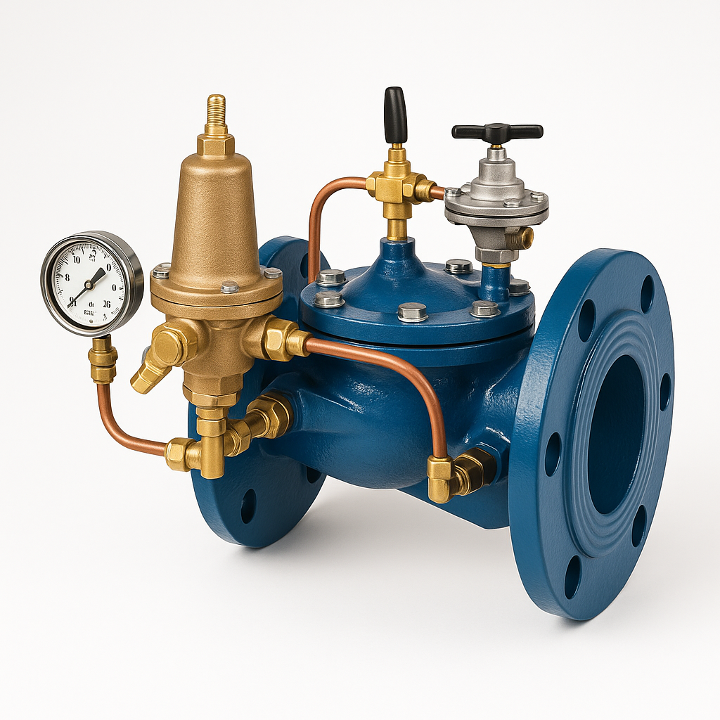 Клапан RAF60 является редукционным клапаном, регулирующим давление «после себя». Регулятор давления RAF60 приводится в действие давлением воды и контролируется пилотным клапаном.