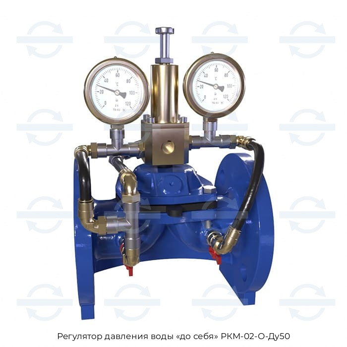 Клапан РКМ-02-О-Ду50 регулирует давление «До себя», т.е. ограничивает максимальное давление воды во входном трубопроводе, на отвод от которого он установлен, путем сброса излишка воды, либо создает подпор давления при установке на напорном трубопроводе. Модели «До себя» используют в системах хозяйственно-питьевого водоснабжения. Оборудование работает автономно, не требует подвода электричества и других внешних устройств. Есть возможность улучшить комплектацию расширенными функциями под конкретные требования объекта.