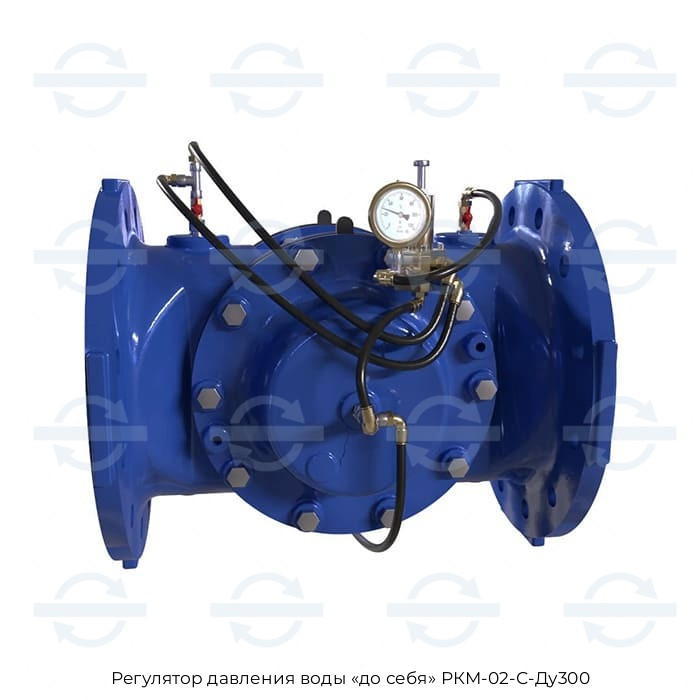 Клапан РКМ-02-С-Ду300 регулирует давление «До себя», т.е. ограничивает максимальное давление воды во входном трубопроводе, на отвод от которого он установлен, путем сброса излишка воды, либо создает подпор давления при установке на напорном трубопроводе. Модели «До себя» используют в системах хозяйственно-питьевого водоснабжения. Оборудование работает автономно, не требует подвода электричества и других внешних устройств. Есть возможность улучшить комплектацию расширенными функциями под конкретные требования объекта.
