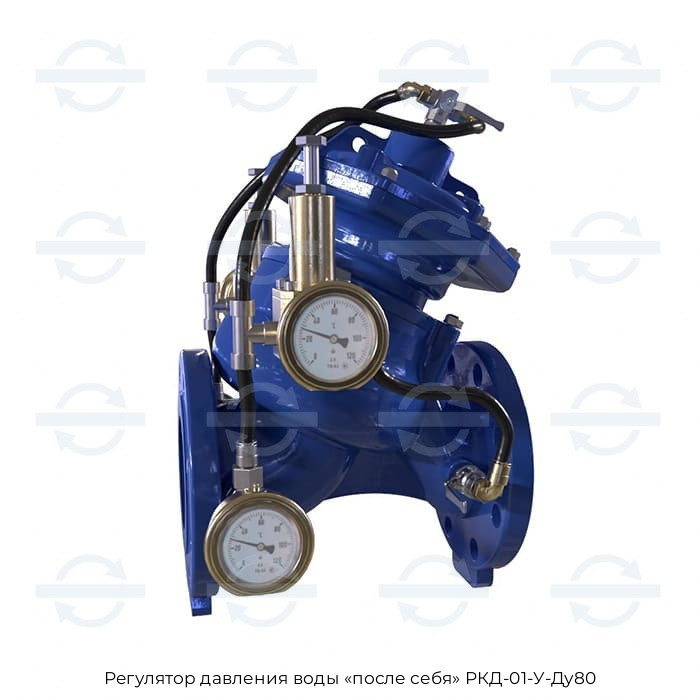 Клапан РКД-01-У-Ду80 После себя используют в системах хозяйственно-питьевого водоснабжения. Изготовлен по ТУ 28.14.11-001-96637044-2019 для регулирования и контроля давления воды. Клапан поддерживает постоянное, предварительно заданное давление на выходе, независимо от расхода и колебаний давления на входе. РКД-01-У-Ду80 работает автоматически, без внешних источников энергии и обеспечивает герметичное закрытие класса А. Есть возможность модифицировать РКД-01 дополнительными опциями под конкретные требования объекта.