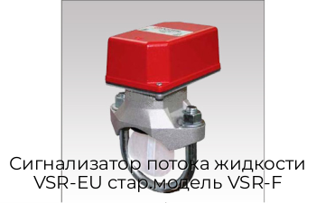 Сигнализатор потока крыльчатого типа модели VSR-EU используется в спринклерных установках пожаротушения. Этот сигнализатор зарегистрирован в страховых лабораториях (UL) и утвержден корпорацией FM для применения в стальных трубах категории 10 - 40 диаметром от 50 мм до 200 мм (2" - 8"). Этот прибор может также использоваться в качестве детектора потока в проходном сечении крупных трубных установок.