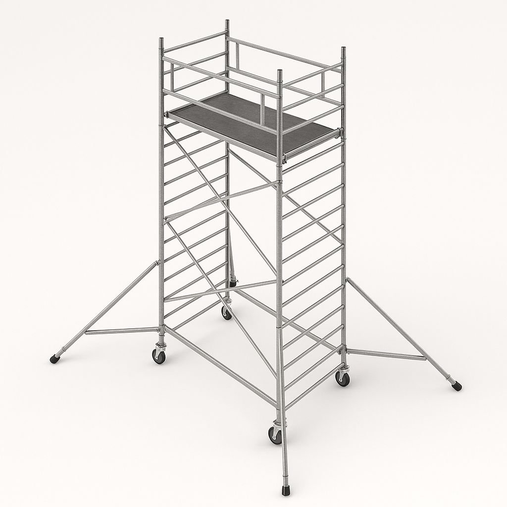 Вышка-тура состоит из метровых и 2-хметровых блоков. Блоки фиксируются между собой. Используются диагональные и горизонтальные стяжки. Монтируются на компактном основании из стальных стяжек. Все вышки оснащены поворотными колесами со стопорами. Колеса регулируются по высоте в рамках длины винтовой опоры. Туры с высотой от 5 метров оснащаются четырьмя консолями-стабилизаторами. Кол-во рабочих настилов м.б. увеличено до 3-х (опция).