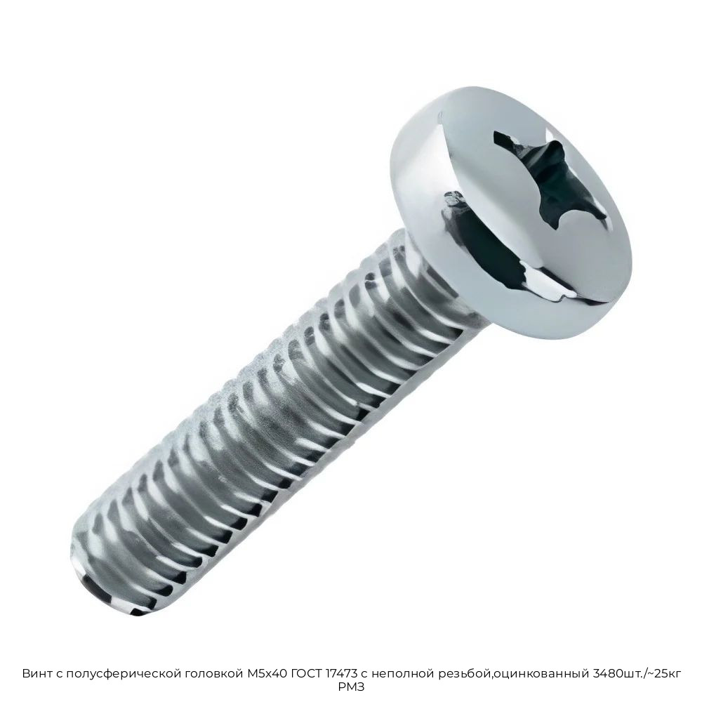 Купить Винт с полусферической головкой M5x40 ГОСТ 17473 с неполной резьбой,оцинкованный 3480шт./~25кг РМЗ в Москве с быстрой отгрузкой и доставкой по выгодной цене вы можете в компании Черметком. Мы поставляем металлопрокат оптом и в розницу, работаем как с организациями, так и с частными клиентами.