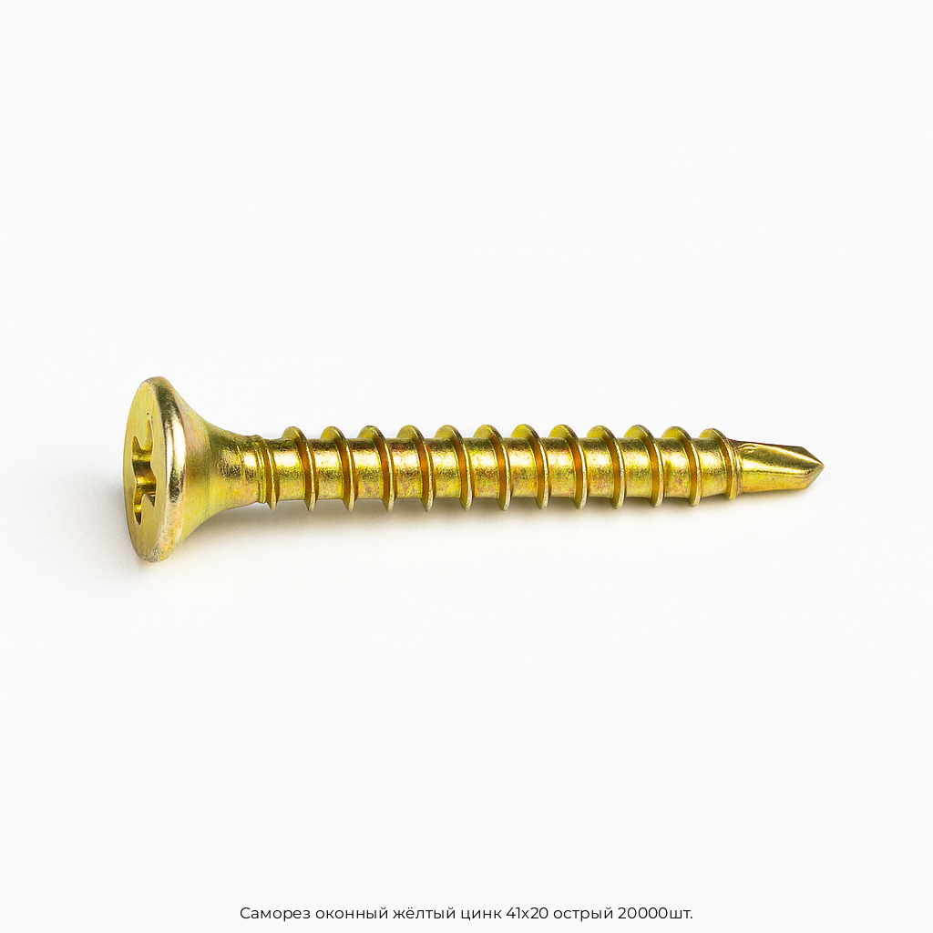 Купить Саморез оконный жёлтый цинк 41x20 острый 20000шт. в Москве с быстрой отгрузкой и доставкой по выгодной цене вы можете в компании Черметком. Мы поставляем металлопрокат оптом и в розницу, работаем как с организациями, так и с частными клиентами.