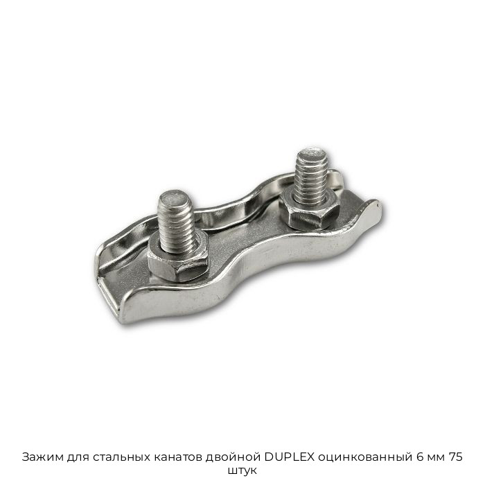 Купить Зажим для стальных канатов двойной DUPLEX оцинкованный 6 мм 75 штук в Москве с быстрой отгрузкой и доставкой по выгодной цене вы можете в компании Черметком. Мы поставляем металлопрокат оптом и в розницу, работаем как с организациями, так и с частными клиентами.