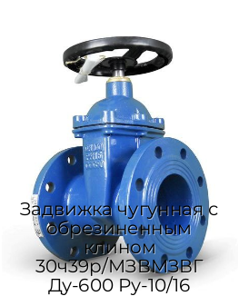 Технические характеристики чугунных задвижек с обрезиненным клином 30ч39р (МЗВ):